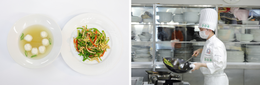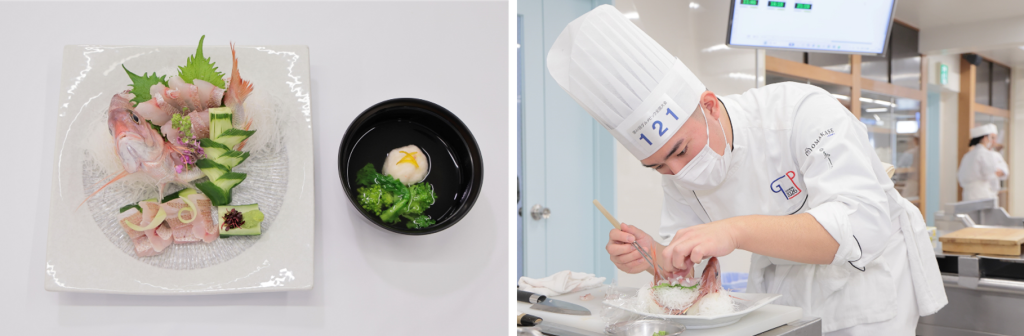 選手たちは、日本料理・西洋料理・中国料理の3部門において、在学中に修得した技術を、制限時間内で競い合う最高峰の舞台に立ちます。